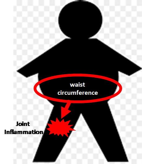 BMI has been the obesity measure of choice in many previous studies in inflammatory arthritis. However, it has been shown that BMI is not an accurate anthropometric method to diagnose obesity, especially in individuals with altered body compositions (such as inflammatory arthritis patients) due to its inability to discriminate between lean mass and fat mass. Waist circumference has been shown to be superior to BMI in its correlation with visceral fat and has become the preferred measure for abdominal  obesity.Central obesity is defined as having a waist circumference of ≥94 cm in men and ≥80 cm in women The pro-inflammatory nature of fat tissue is now well established. These effects are mediated through the secretion of numerous pro-inflammatory cytokines by adipose tissue, coined adipokines. It is suggested that increased adiposity may have a role in the pathogenesis of inflammatory diseases, however the evidence is conflicting. Numerous studies have demonstrated a positive correlation between BMI and the risk of developing RA. An association between obesity and disease activity in RA has been reported in several previous studies. The Better Anti‐Rheumatic Farmacotherapy observational (BARFOT) study demonstrated that obese patients had higher disease activity and lower rates of remission). Obesity has also been associated with a reduced response to TNF-inhibitors (TNFi).